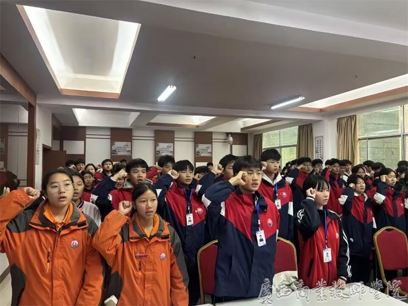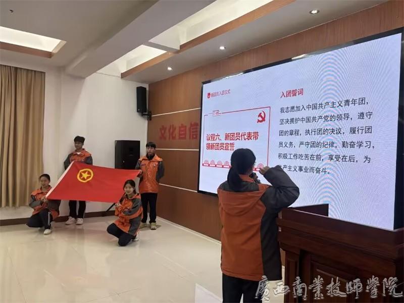 为进一步加强共青团组织队伍建设,增强共青团员的组织荣誉感,共同唱响新时代主旋律,2025年12月5日15时50分,在风情园四楼会议室,广西商业技师学院团委以“砥砺奋进守初心 星火青春心向党”为主题开展了本期星火学堂结课暨新团员入团宣誓仪式。学院党委委员、院长助理兼学院党委办公室主任黄甜,学院团委书记廖星、副书记赵哲林、陈栋,各学部团总支书记和团委干事参加本次宣誓仪式。仪式由学院团委书记廖星主持。